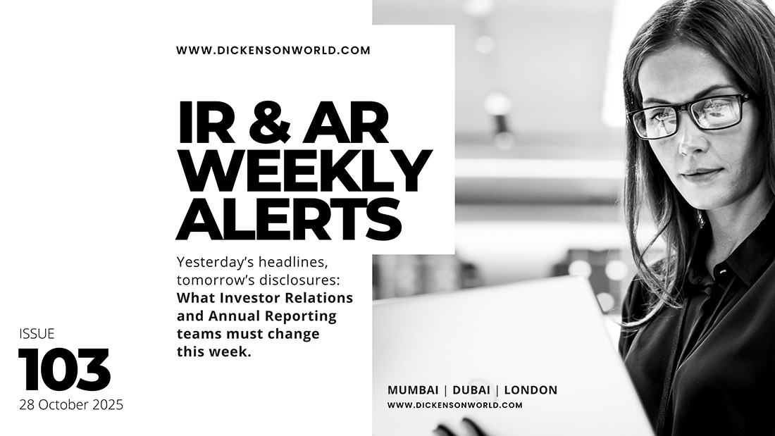 Weekly IRO and Annual Report Intelligence Date: Monday, 27 October 2025 Coverage window: 13–27 Oct 2025 (14 days) Scope: United Kingdom, India, UAE, Qatar, Saudi Arabia Why this matters (fast take) Regulators have tightened the screws across three fronts that will shape what you publish and ...