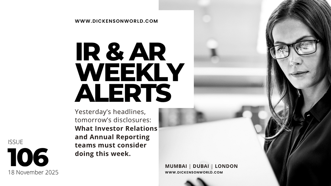 IR & AR WEEKLY ALERTS — Issue 106 Coverage window: 10–16 November 2025 Scope: United Kingdom • India • United Arab Emirates (Dubai) • Qatar • Saudi Arabia Why this matters The week’s developments point to concrete shifts in how issuers explain governance, prepare stewardship disclosures, protect ...