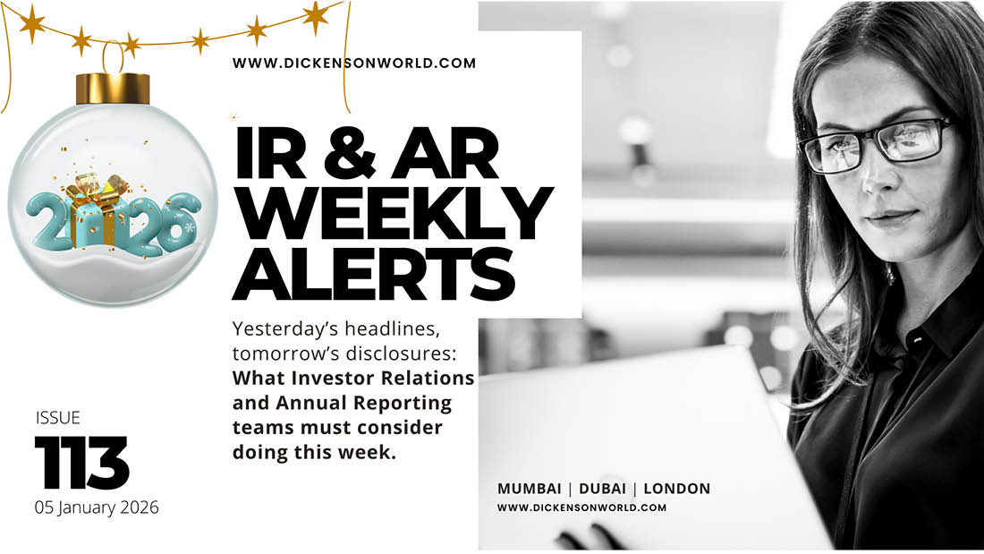 IR & AR WEEKLY ALERTS — ISSUE 113 Coverage window: 28 December 2025 – 03 January 2026 Jurisdictions: United Kingdom, India, UAE (DIFC), Qatar, Saudi Arabia Why this matters Year-end calendar effects usually compress formal regulatory publishing schedules, but the drafting burden does not pause. This week, ...