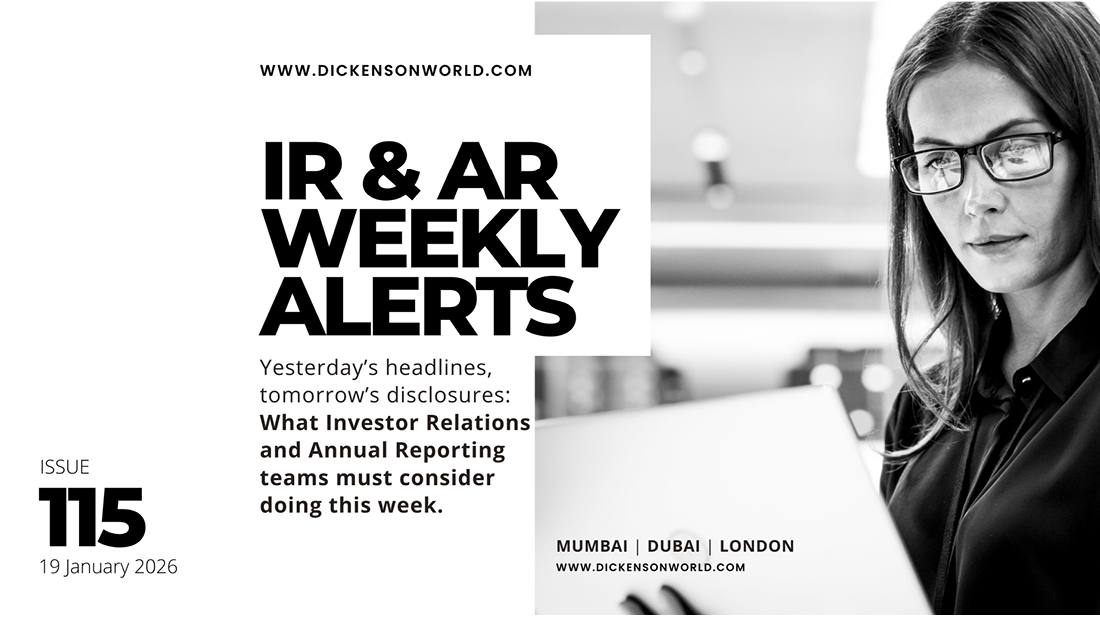 IR & AR WEEKLY ALERTS — ISSUE 115 Coverage window (IST): 12 January 2026 (post 18:00 IST) to 19 January 2026 (18:00 IST) Jurisdictions: United Kingdom; India; UAE (DIFC); Saudi Arabia (plus a short Qatar watchpoint) Why this matters This week’s developments concentrate around three disclosure pressures ...