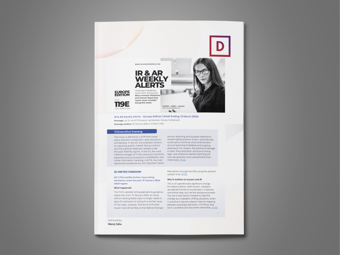 For listed issuers, this matters because stewardship reporting shapes the engagement posture of major investors, especially around governance, capital allocation, sustainability oversight and escalation behaviour. The revised Code is more flexible, but it also makes it easier for investors to explain their stewardship priorities in a more targeted way. Issuers should expect sharper, more articulated investor questioning rather than less scrutiny. (FRC (Financial Reporting Council))